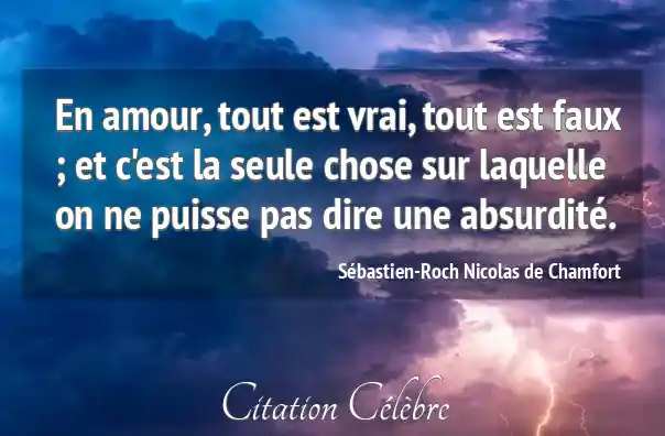 En amour, tout est vrai, tout est faux ; et c'est la seule chose sur laquelle on ne puisse pas dire une absurdité.