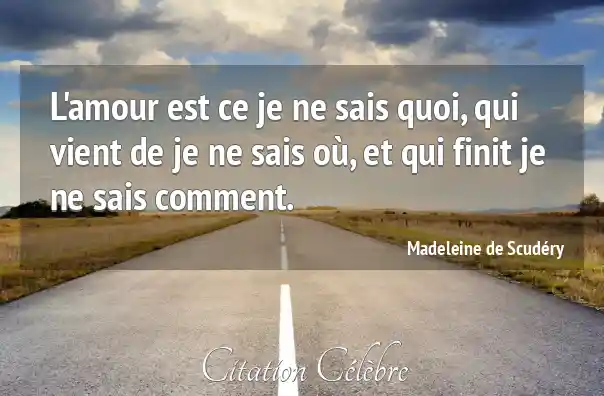 L'amour est ce je ne sais quoi, qui vient de je ne sais où, et qui finit je ne sais comment.