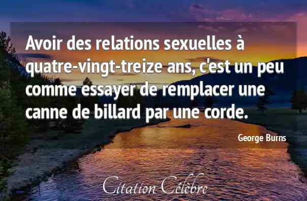 Avoir des relations sexuelles à quatre-vingt-treize ans, c'est un peu comme essayer de remplacer une canne de billard par une corde.