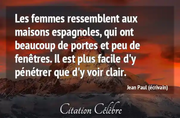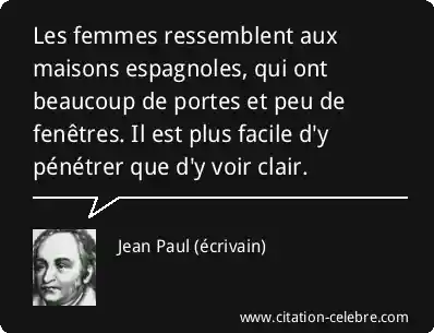 Citation Jean Paul (écrivain) femmes : Les femmes ressemblent aux maisons espagnoles, qui ont beaucoup de...