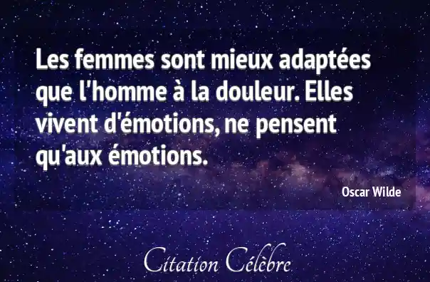 Les femmes sont mieux adaptées que l'homme à la douleur. Elles vivent d'émotions, ne pensent qu'aux émotions.