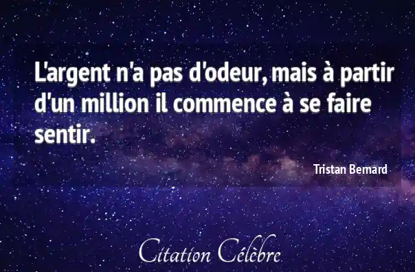 Citation Tristan Bernard argent : L'argent n'a pas d'odeur, mais à partir d'un million il...