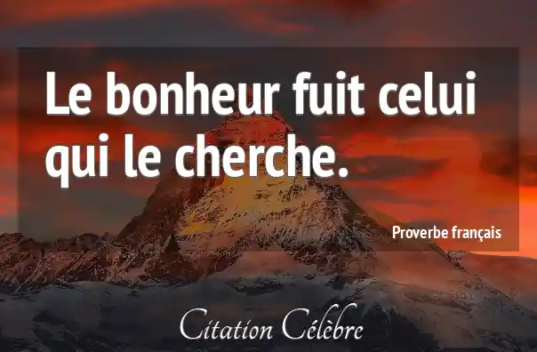 Proverbe  Français Bonheur : Le bonheur fuit celui qui le cherche....