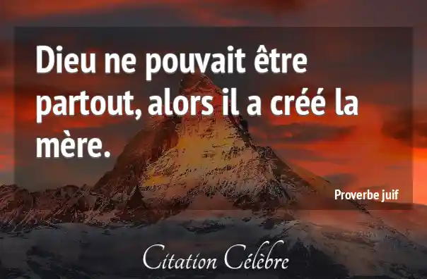 Dieu ne pouvait être partout, alors il a créé la mère.