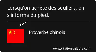 Proverbe  Chinois Pied : Lorsqu'on achète des souliers, on s'informe du pied....