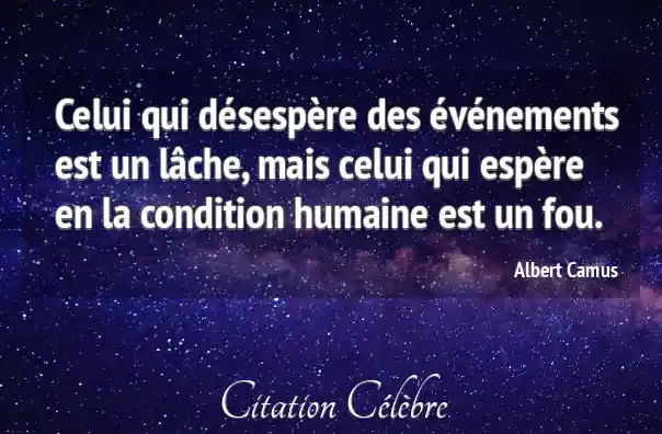 Celui qui désespère des événements est un lâche, mais celui qui espère en la condition humaine est un fou.