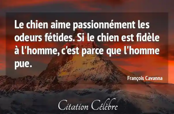 Le chien aime passionnément les odeurs fétides. Si le chien est fidèle à l'homme, c'est parce que l'homme pue.