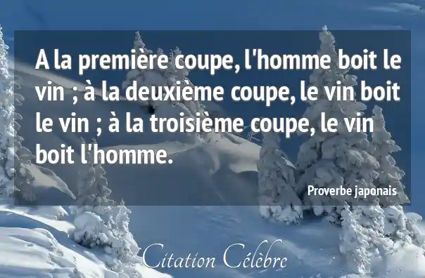 A la première coupe, l'homme boit le vin ; à la deuxième coupe, le vin boit le vin ; à la troisième coupe, le vin boit l'homme.