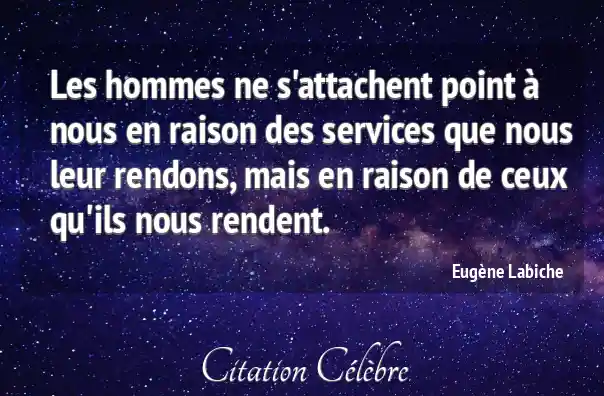 Les hommes ne s'attachent point à nous en raison des services que nous leur rendons, mais en raison de ceux qu'ils nous rendent.