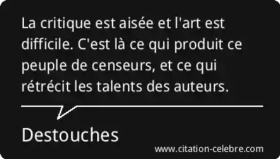 La critique est aisée et l'art est difficile. C'est là ce qui produit ce peuple de censeurs, et ce qui rétrécit les talents des auteurs.