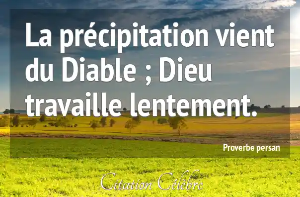 La précipitation vient du Diable ; Dieu travaille lentement.