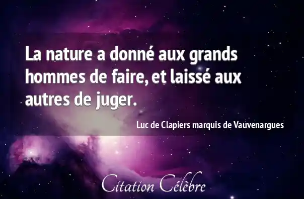 La nature a donné aux grands hommes de faire, et laissé aux autres de juger.