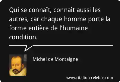 Qui se connaît, connaît aussi les autres, car chaque homme porte la forme entière de l'humaine condition.