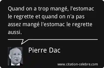 Quand on a trop mangé, l'estomac le regrette et quand on n'a pas assez mangé l'estomac le regrette aussi.