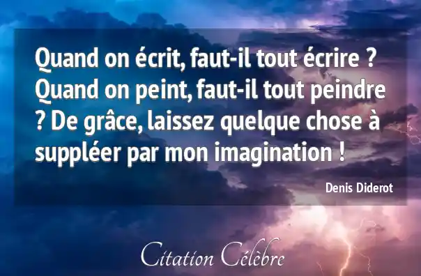 Quand on écrit, faut-il tout écrire ? Quand on peint, faut-il tout peindre ? De grâce, laissez quelque chose à suppléer par mon imagination !