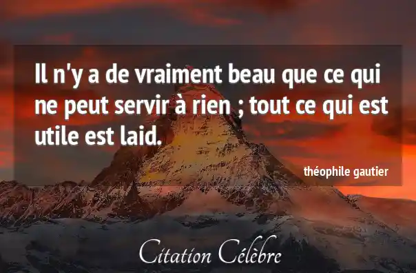Il n'y a de vraiment beau que ce qui ne peut servir à rien ; tout ce qui est utile est laid.