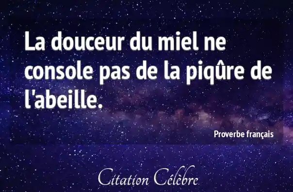 La douceur du miel ne console pas de la piqûre de l'abeille.