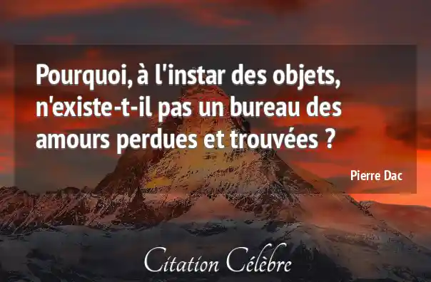 Pourquoi, à l'instar des objets, n'existe-t-il pas un bureau des amours perdues et trouvées ?