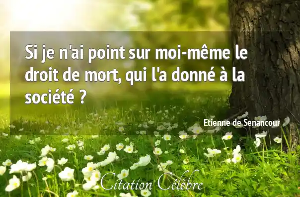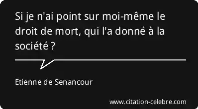 Si je n'ai point sur moi-même le droit de mort, qui l'a donné à la société ?