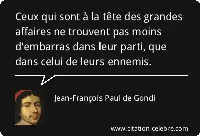 Ceux qui sont à la tête des grandes affaires ne trouvent pas moins d'embarras dans leur parti, que dans celui de leurs ennemis.