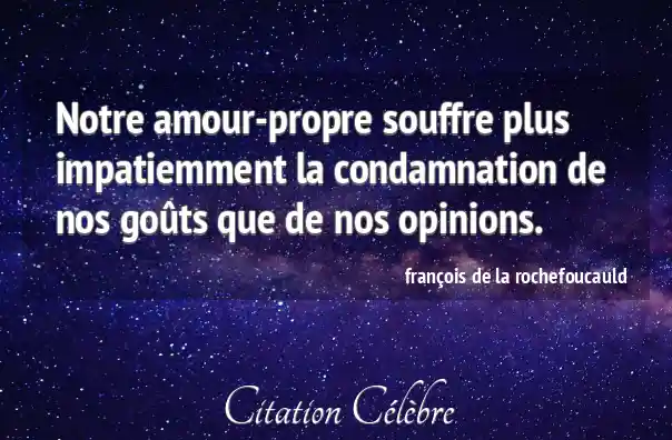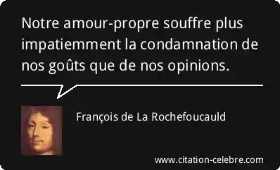 Notre amour-propre souffre plus impatiemment la condamnation de nos goûts que de nos opinions.