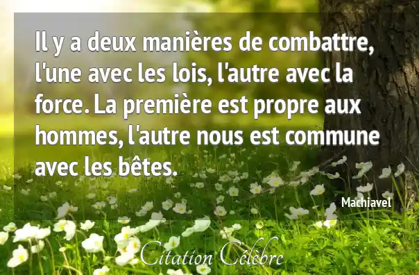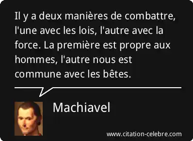 Il y a deux manières de combattre, l'une avec les lois, l'autre avec la force. La première est propre aux hommes, l'autre nous est commune avec les bêtes.