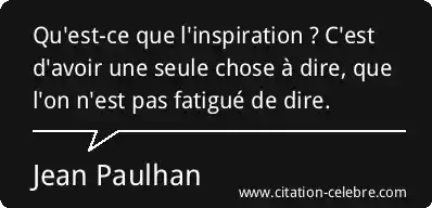 Qu'est-ce que l'inspiration ? C'est d'avoir une seule chose à dire, que l'on n'est pas fatigué de dire.