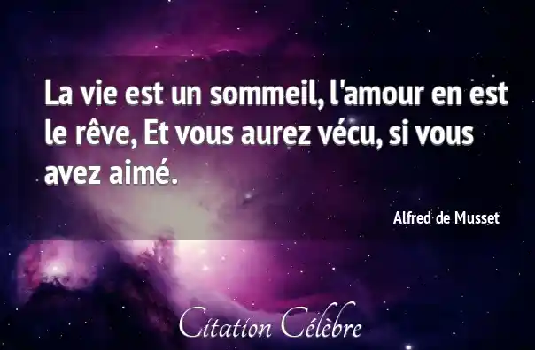 La vie est un sommeil, l'amour en est le rêve, Et vous aurez vécu, si vous avez aimé.