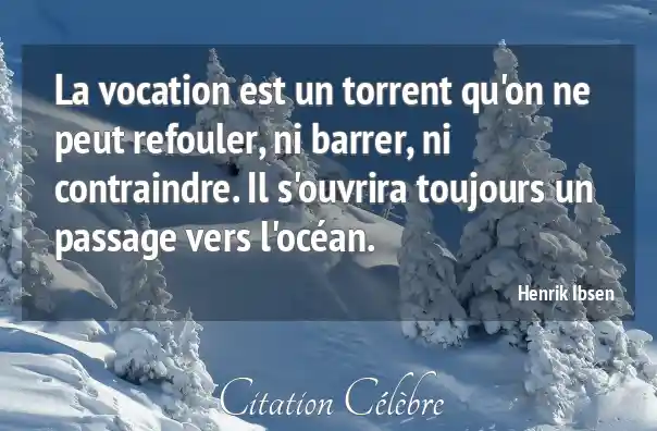 La vocation est un torrent qu'on ne peut refouler, ni barrer, ni contraindre. Il s'ouvrira toujours un passage vers l'océan.