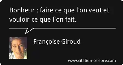 Bonheur : faire ce que l'on veut et vouloir ce que l'on fait.