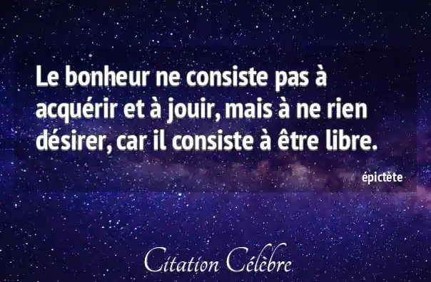 Le bonheur ne consiste pas à acquérir et à jouir, mais à ne rien désirer, car il consiste à être libre.