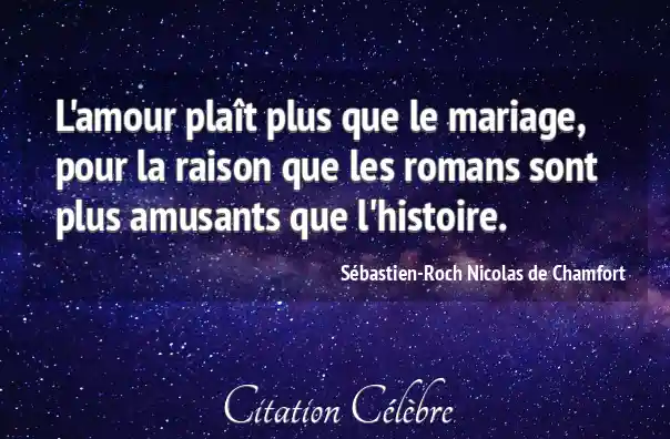 L'amour plaît plus que le mariage, pour la raison que les romans sont plus amusants que l'histoire.