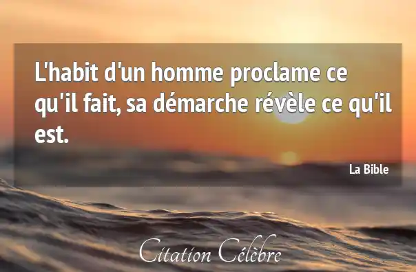 Citation La Bible homme : L'habit d'un homme proclame ce qu'il fait, sa démarche révèle...