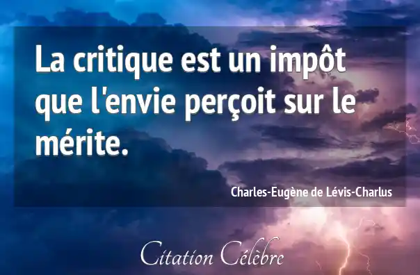 La critique est un impôt que l'envie perçoit sur le mérite.