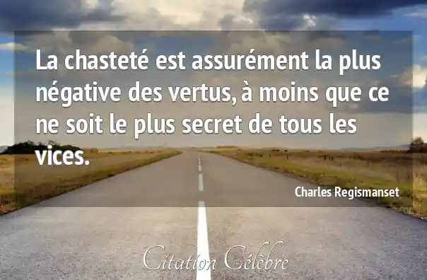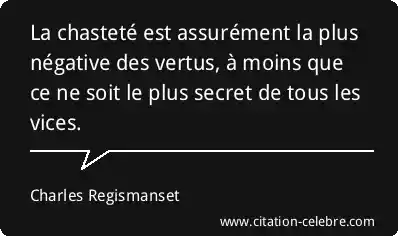 La chasteté est assurément la plus négative des vertus, à moins que ce ne soit le plus secret de tous les vices.