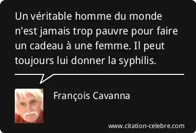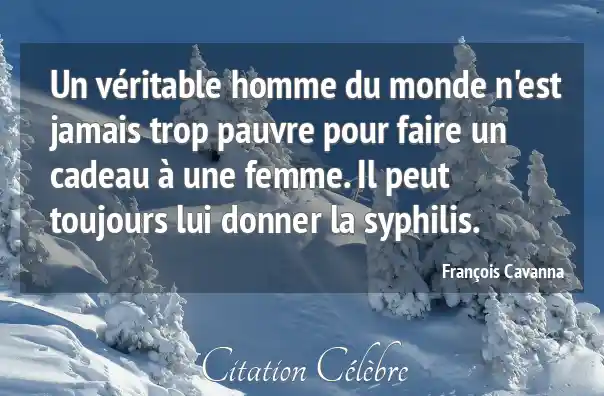 Un véritable homme du monde n'est jamais trop pauvre pour faire un cadeau à une femme. Il peut toujours lui donner la syphilis.