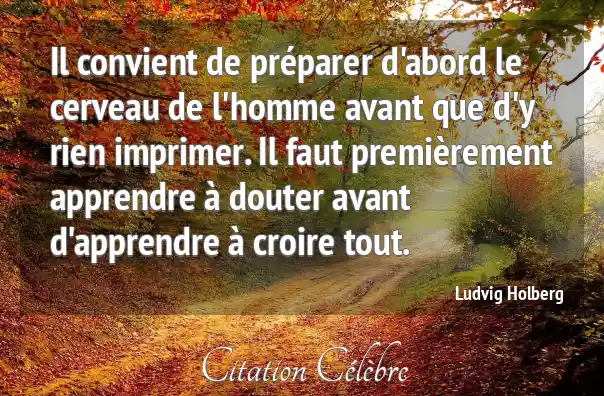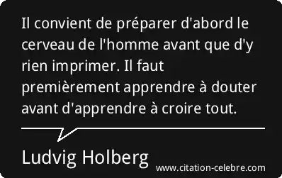 Il convient de préparer d'abord le cerveau de l'homme avant que d'y rien imprimer. Il faut premièrement apprendre à douter avant d'apprendre à croire tout.