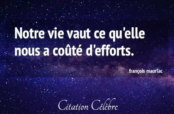 Citation François Mauriac vie : Notre vie vaut ce qu'elle nous a coûté d'efforts....
