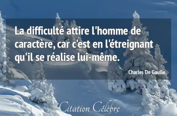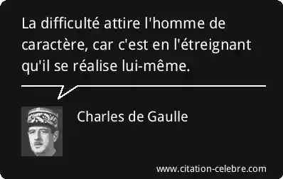 La difficulté attire l'homme de caractère, car c'est en l'étreignant qu'il se réalise lui-même.