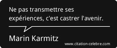Ne pas transmettre ses expériences, c'est castrer l'avenir.