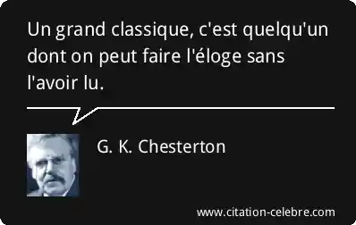 Citation G. K. Chesterton avoir : Un grand classique, c'est quelqu'un dont on peut faire l'éloge...