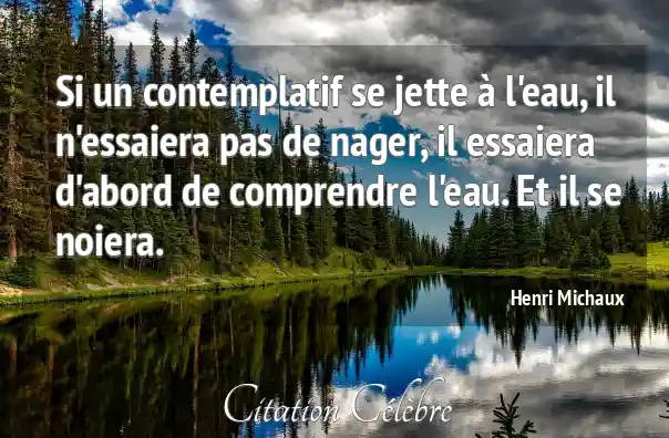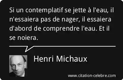 Si un contemplatif se jette à l'eau, il n'essaiera pas de nager, il essaiera d'abord de comprendre l'eau. Et il se noiera.