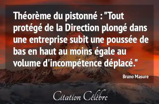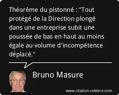 Théorème du pistonné : "Tout protégé de la Direction plongé dans une entreprise subit une poussée de bas en haut au moins égale au volume d'incompétence déplacé."