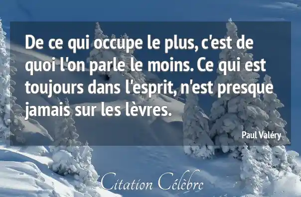 De ce qui occupe le plus, c'est de quoi l'on parle le moins. Ce qui est toujours dans l'esprit, n'est presque jamais sur les lèvres.