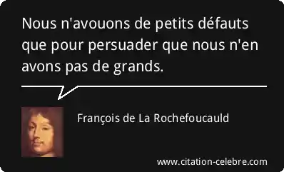 Nous n'avouons de petits défauts que pour persuader que nous n'en avons pas de grands.