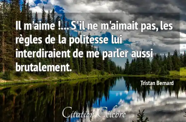 Il m'aime !... S'il ne m'aimait pas, les règles de la politesse lui interdiraient de me parler aussi brutalement.