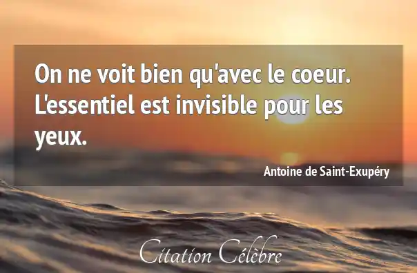 On ne voit bien qu'avec le coeur. L'essentiel est invisible pour les yeux.