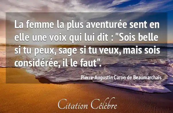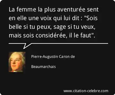 La femme la plus aventurée sent en elle une voix qui lui dit : "Sois belle si tu peux, sage si tu veux, mais sois considérée, il le faut".
