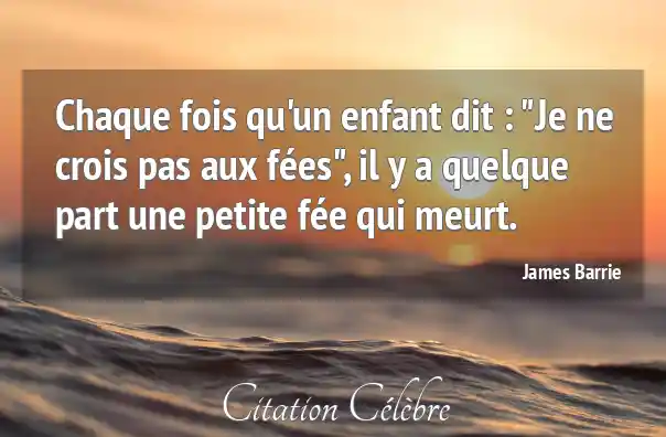 Chaque fois qu'un enfant dit : "Je ne crois pas aux fées", il y a quelque part une petite fée qui meurt.