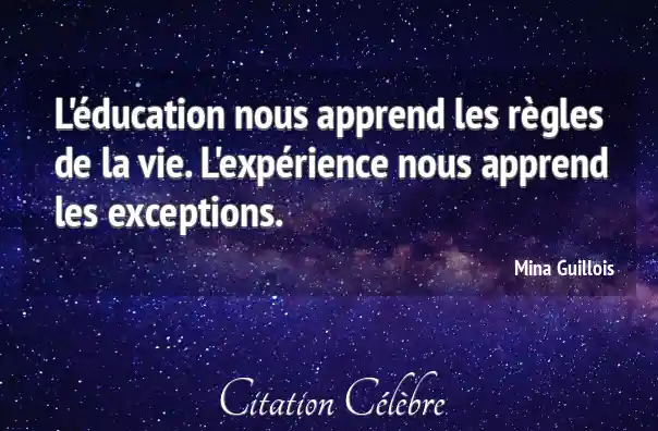 L'éducation nous apprend les règles de la vie. L'expérience nous apprend les exceptions.